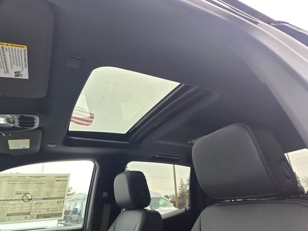 CONVENIENCE PACKAGE includes (DEG) Driver and front passenger sliding visor with illuminated vanity mirrors, (T40) LED front fog lamps, (CJ2) dual zone automatic climate control, (KI6) 120-volt power outlet rear of console, (KC9) 120-volt bed-mounted power outlet, (BTV) Remote Start, (DD8) inside rear view auto-dimming mirror, (N37) manual tilt/telescoping steering column, (UBI) 2-USB Charge Only, rear of console, (BDR) Tailgate keyed cylinder lock, (BPC) MultiStow Tailgate, (C75) Front interior courtesy light with dual reading light and (PPA) EZ-Lift and Lower tailgate, ELEVATION PREMIUM PACKAGE includes (HXR) Jet Black CoreTec interior, (DA5) Rear Seat Center Arm Rest and (E90) Driver seat back pocket, SUNROOF, POWER INNER SLIDING GLASS with manual shade, TECHNOLOGY PACKAGE includes (UKK) Rear Pedestrian Alert, (KSG) Adaptive Cruise Control, (UV2) HD Surround Vision (Includes (BDR) Tailgate keyed cylinder lock.), PREFERRED PACKAGE includes (A2X) 8-way power driver seat, (AL9) Power lumbar Driver seat and (KA1) heated driver and passenger seats, BEDLINER, SPRAY-ON WITH GMC LOGO, ENGINE, TURBOMAX (310 hp [231 kW] @ 5600 rpm, 430 lb-ft of torque [583 Nm] @ 3000 rpm) (STD), TRANSMISSION, 8-SPEED AUTOMATIC, 8L80 (STD).