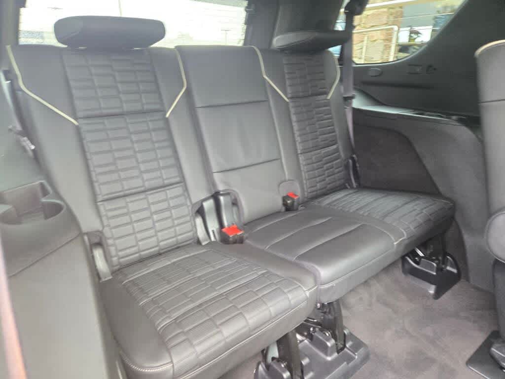includes (SFZ) Monochrome Cadillac emblems, LPO, (RIK) Gloss Black Escalade nameplate, LPO, and (SSX) 22" 12-Spoke Gloss Black finish alloy wheels, LPO (Includes wheel locks.), ASSIST STEPS, POWER-RETRACTABLE WITH PERIMETER LIGHTING, includes (TRO) Auxiliary trailer camera, LPO, (NQH) 2-speed electronic transfer case, (PTT) Trailer Tire Pressure Monitoring System, (THS) Trailering Assist Guidelines and (V03) extra capacity cooling system, AM/FM/SiriusXM with 360L with 16.9" diagonal color information display (displays and controls navigation, music and all features and functions of the vehicle), personalized profiles for each driver's settings, Natural Voice Recognition, Phone Integration for Wireless Apple CarPlay®/Wireless Android Auto® capability for compatible phone, Connected Apps and Teen Driver (STD), Direct Injection and Variable Valve Timing, includes aluminum block construction (420 hp [313.2 kW] @ 5600 rpm, 460 lb-ft of torque [623.7 Nm] @ 4100 rpm) (STD), electronically controlled with overdrive, tow/haul mode and tap up/tap down shifting (STD).