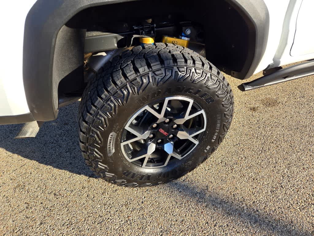AT4X PACKAGE includes (Z82) Trailering Package, (3F9) Red seatbelt color, (AAK) All-weather floor mats, LPO, (BZT) Off-Road Rocker Protection, (CGN) Spray-on bedliner, (G93) electronic, driver-selectable full-locking front differential, (G94) electronic, driver-selectable full-locking rear differential, (HS1) Safety Alert Seat, (HV1) Obsidian Rush interior trim, (MFI) sport upper body window moldings, (QAF) LT285/70R17C MT blackwall tires, (R34) 17" Black High Gloss Machined Finish Aluminum wheels, (RMR) spare LT285/70R17C MT blackwall tire, (U1D) In-vehicle Trailering App, (UXA) underbody cameras, Drive mode selector adds Baja mode, (AGG) solar glazing front side glass and Off-Road Suspension with 3" lift. Includes interior and exterior badging. TECHNOLOGY PLUS PACKAGE includes (KSG) Adaptive Cruise Control, (UKK) Rear Pedestrian Alert, (UV2) HD Surround Vision, (CAC) Sunroof, (UQA) Bose Sound System, (AKK) laminated acoustic windshield glass and (UV6) Multicolor 6.3" Diagonal Head-Up Display, AT4 PREMIUM PACKAGE includes (HX6) Jet Black/Timber perforated leather-appointed front seating surfaces, (A45) Driver memory recall, (A7J) 6-way front passenger seat, (AT9) Power Lumbar front passenger seat, (DA5) Rear Seat Center Arm Rest, (E90) Driver seat back pocket, (K7A) Wireless charging, (KI3) heated steering wheel and (KU9) Ventilated driver and front passenger seats, ENGINE, TURBOMAX (310 hp [231 kW] @ 5600 rpm, 430 lb-ft of torque [583 Nm] @ 3000 rpm) (STD), TRANSMISSION, 8-SPEED AUTOMATIC, 8L80 (STD).